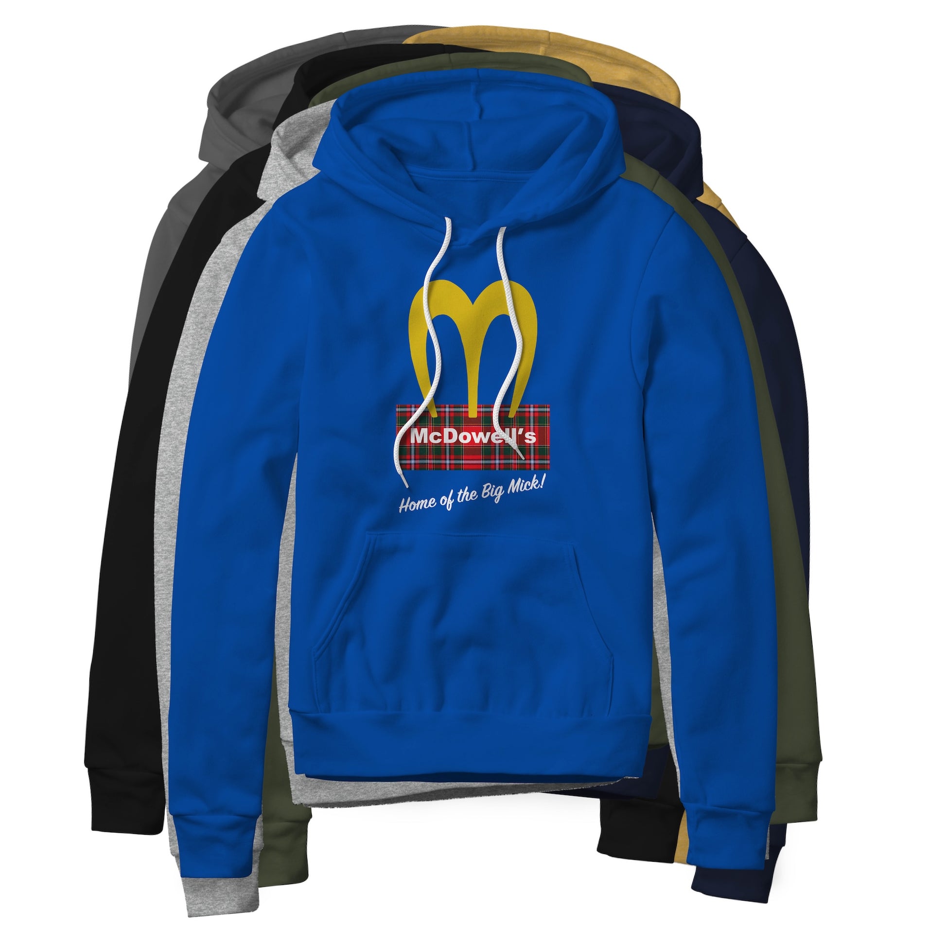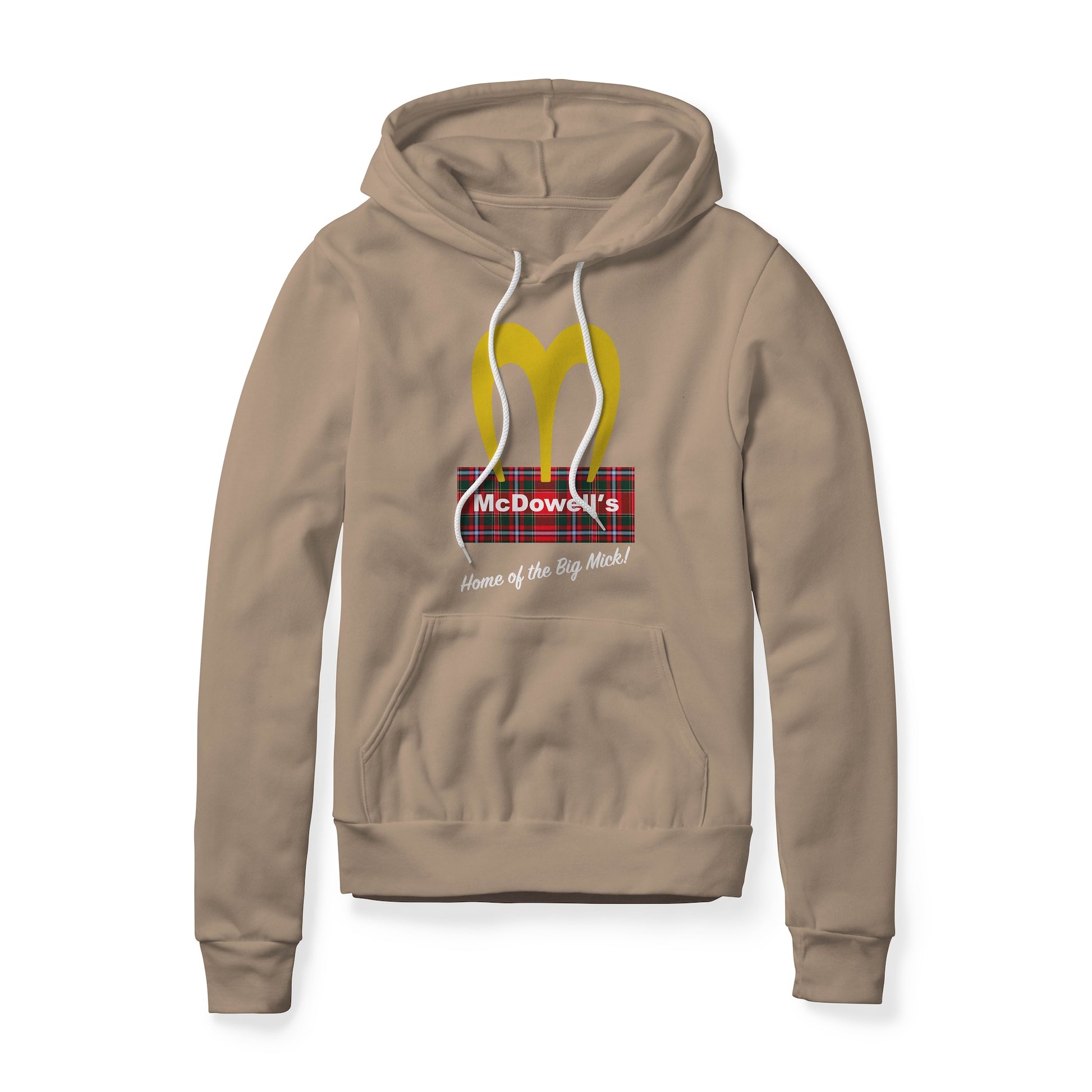 McDowell's logo with "Home of the Big Mick!" tagline. True fans of the Coming To America franchise will recognize and appreciate it on sight. This sponge fleece is super soft and flexible for superior comfort and warmth.