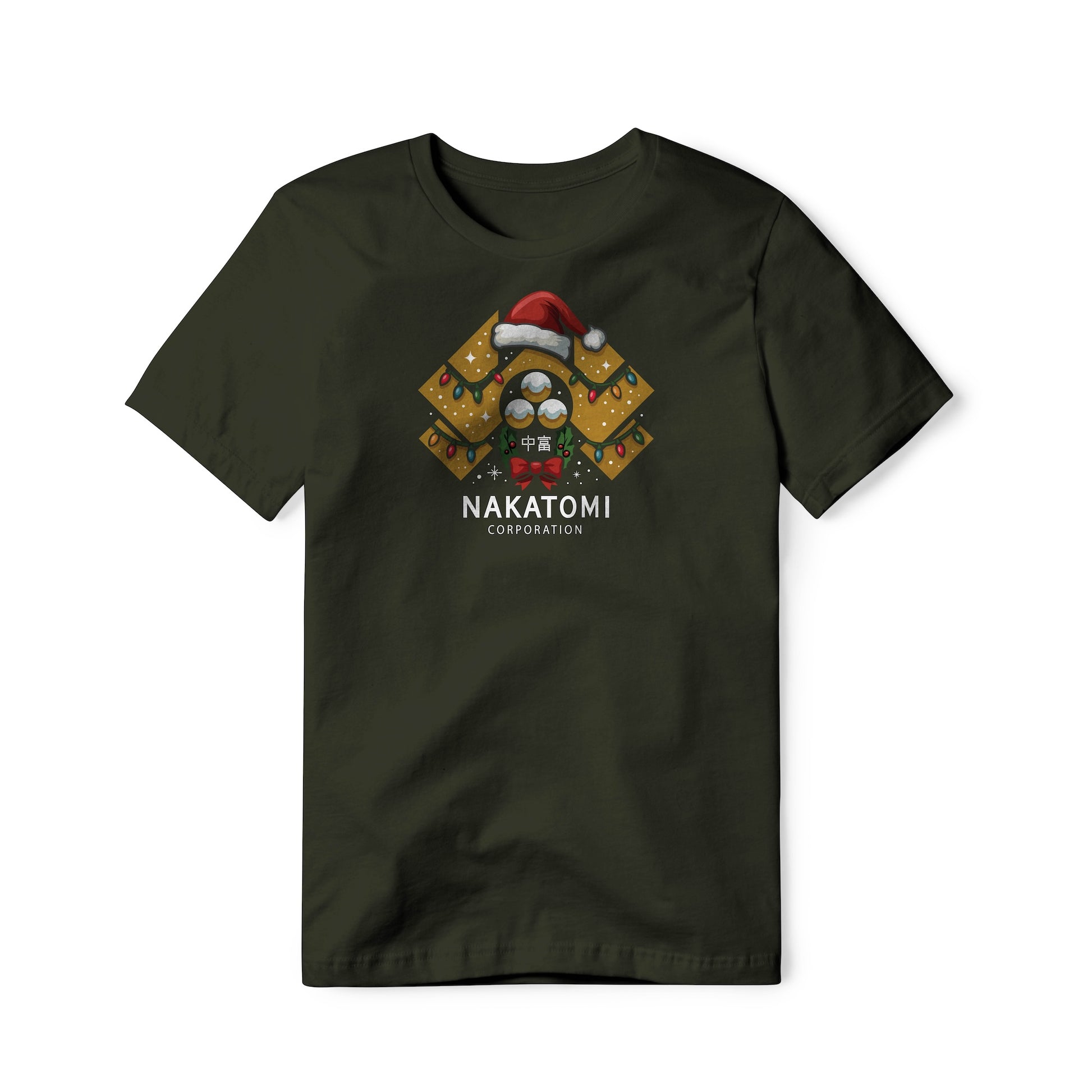 Nakatomi Corporation logo, Christmas edition. True fans of the original Die Hard movie will recognize it and appreciate the treatment to respect this Christmas movie. This classic pure cotton tagless tee is soft and well constructed for all-day comfort.