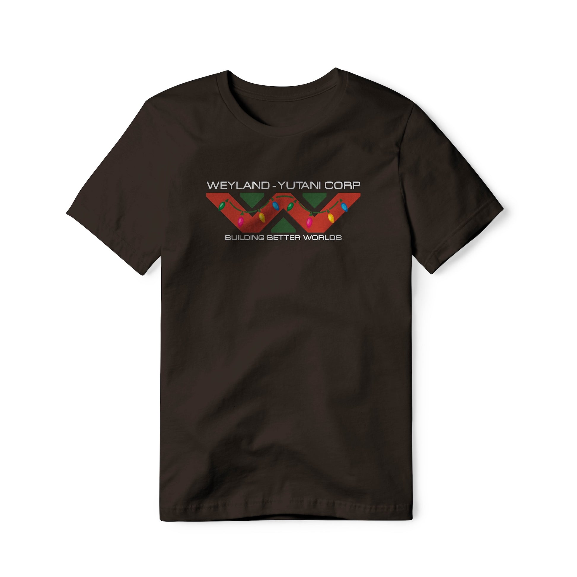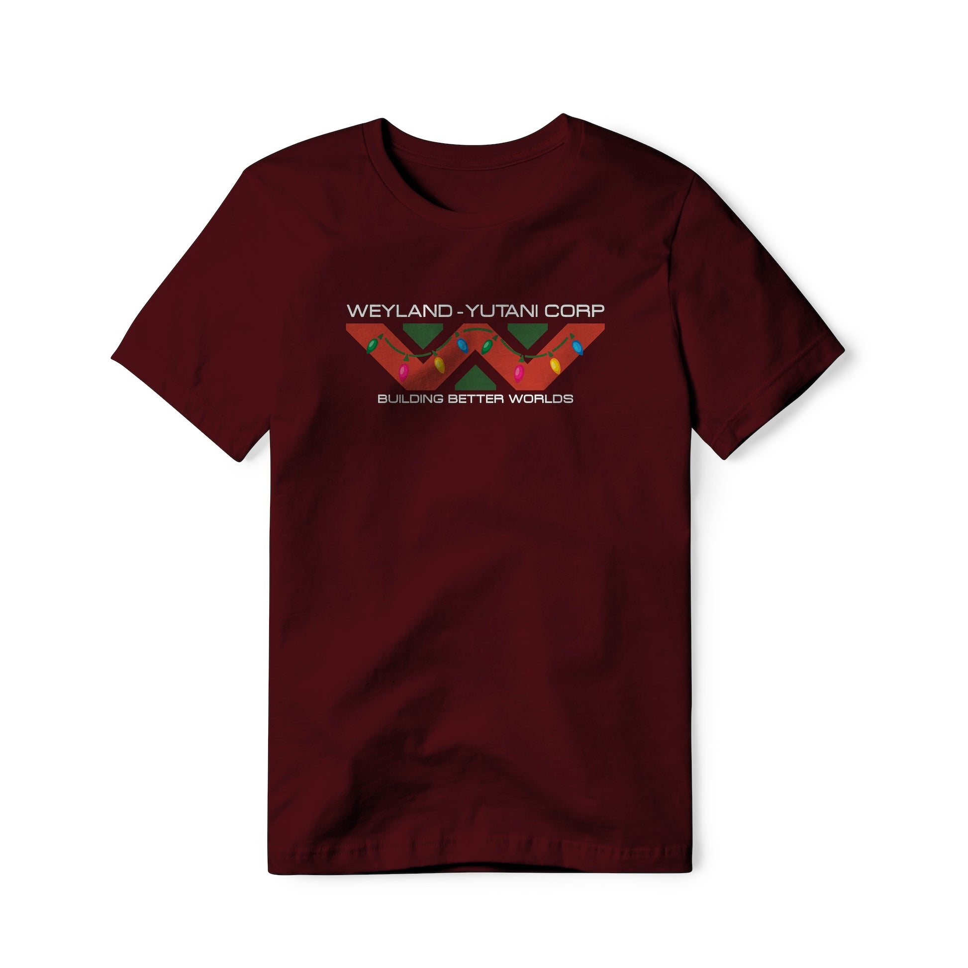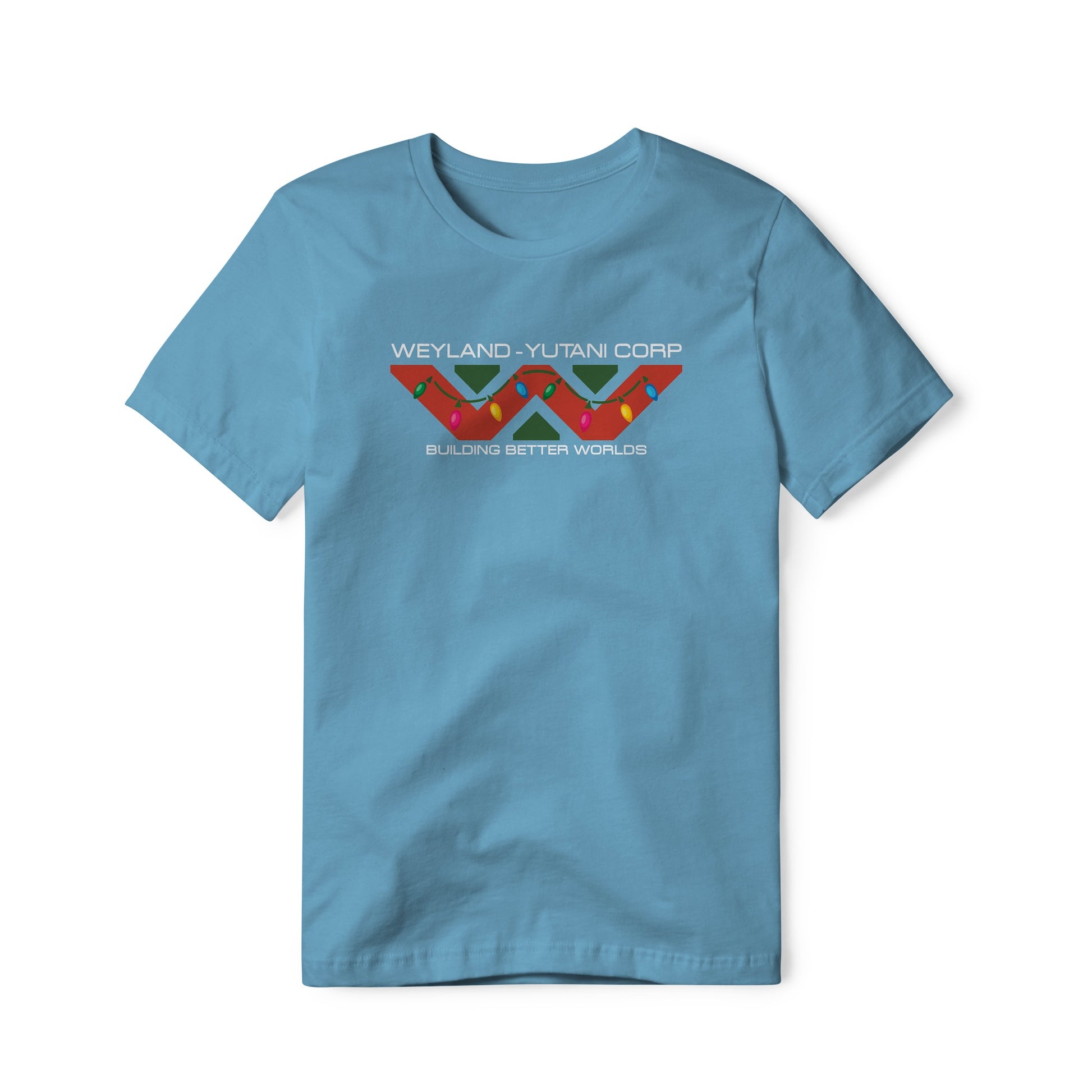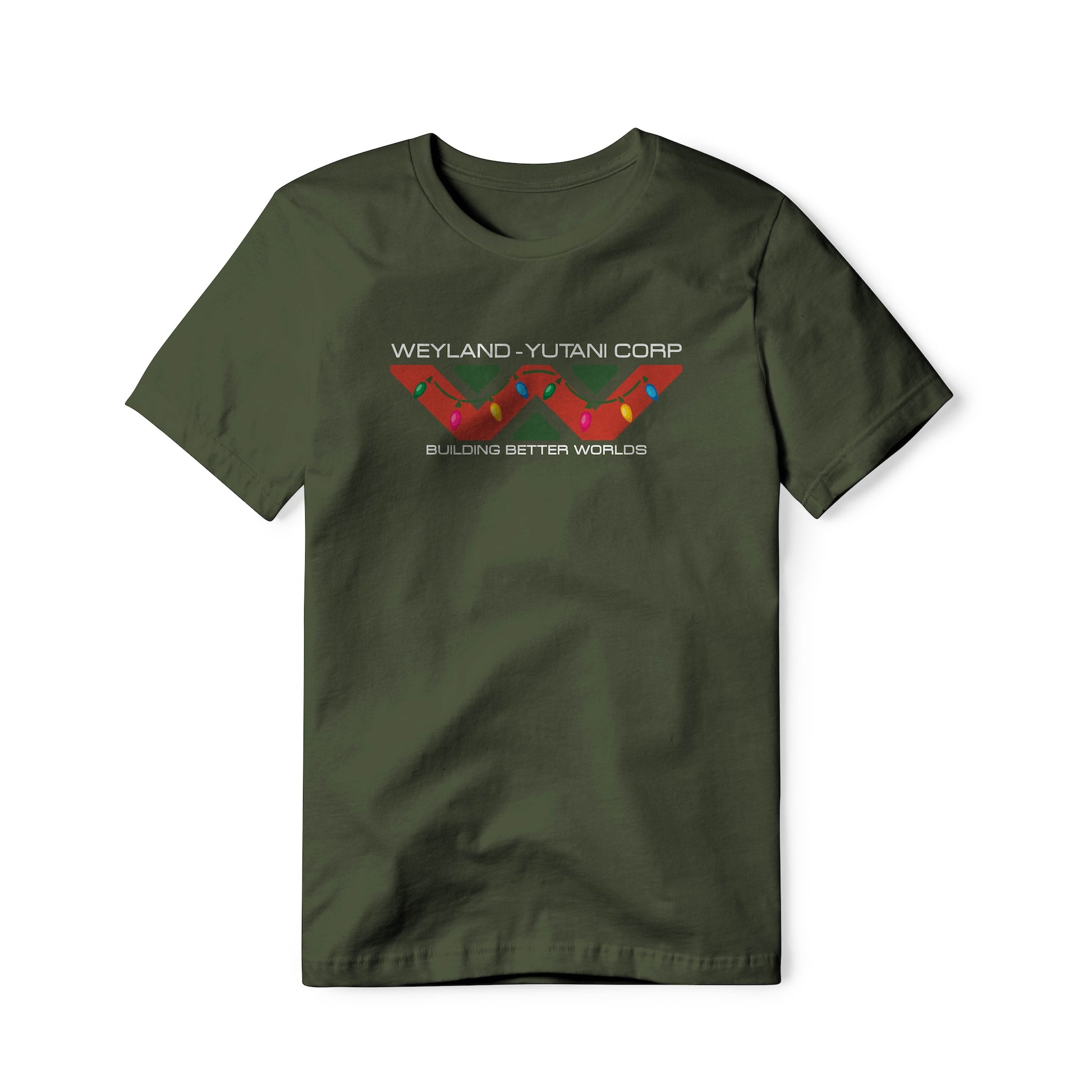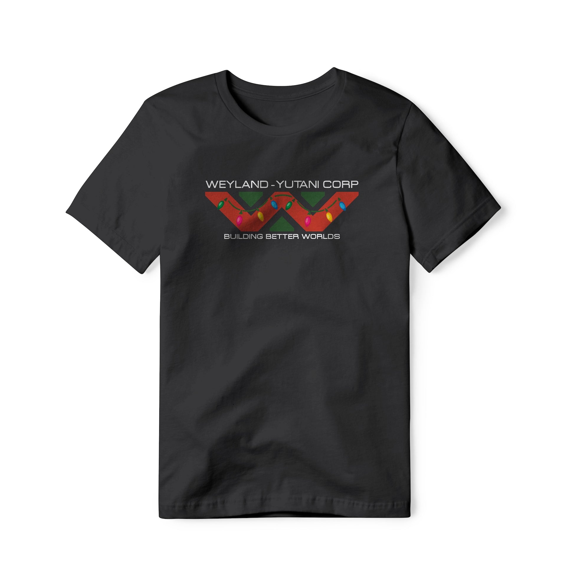 Weyland-Yutani logo with "Building Better Worlds" tagline, special Christmas edition. True fans of the Alien / Aliens franchise will recognize and appreciate this holiday version. This classic pure cotton tagless tee is soft and well constructed for all-day comfort.